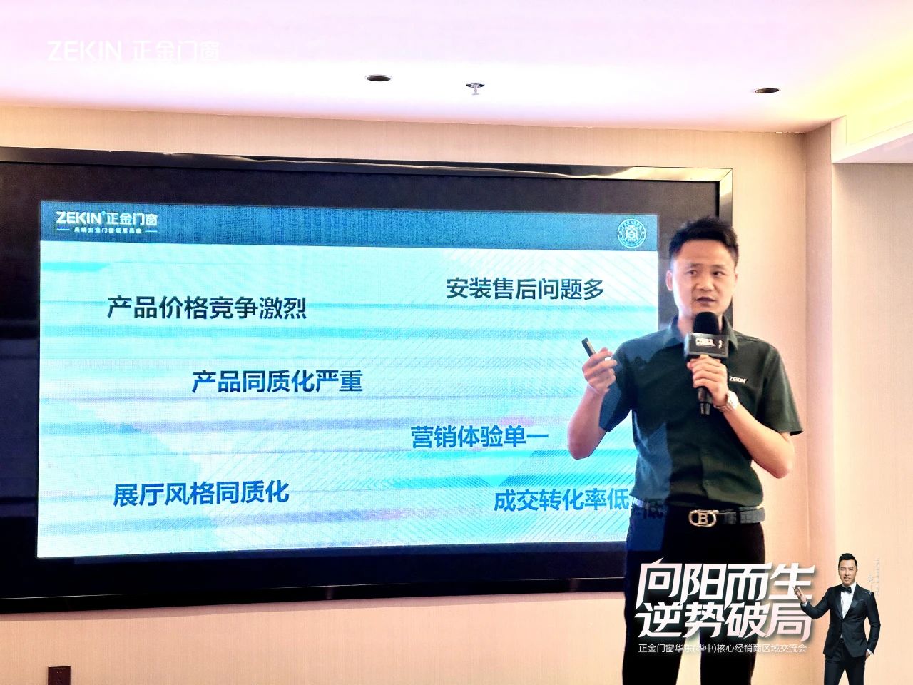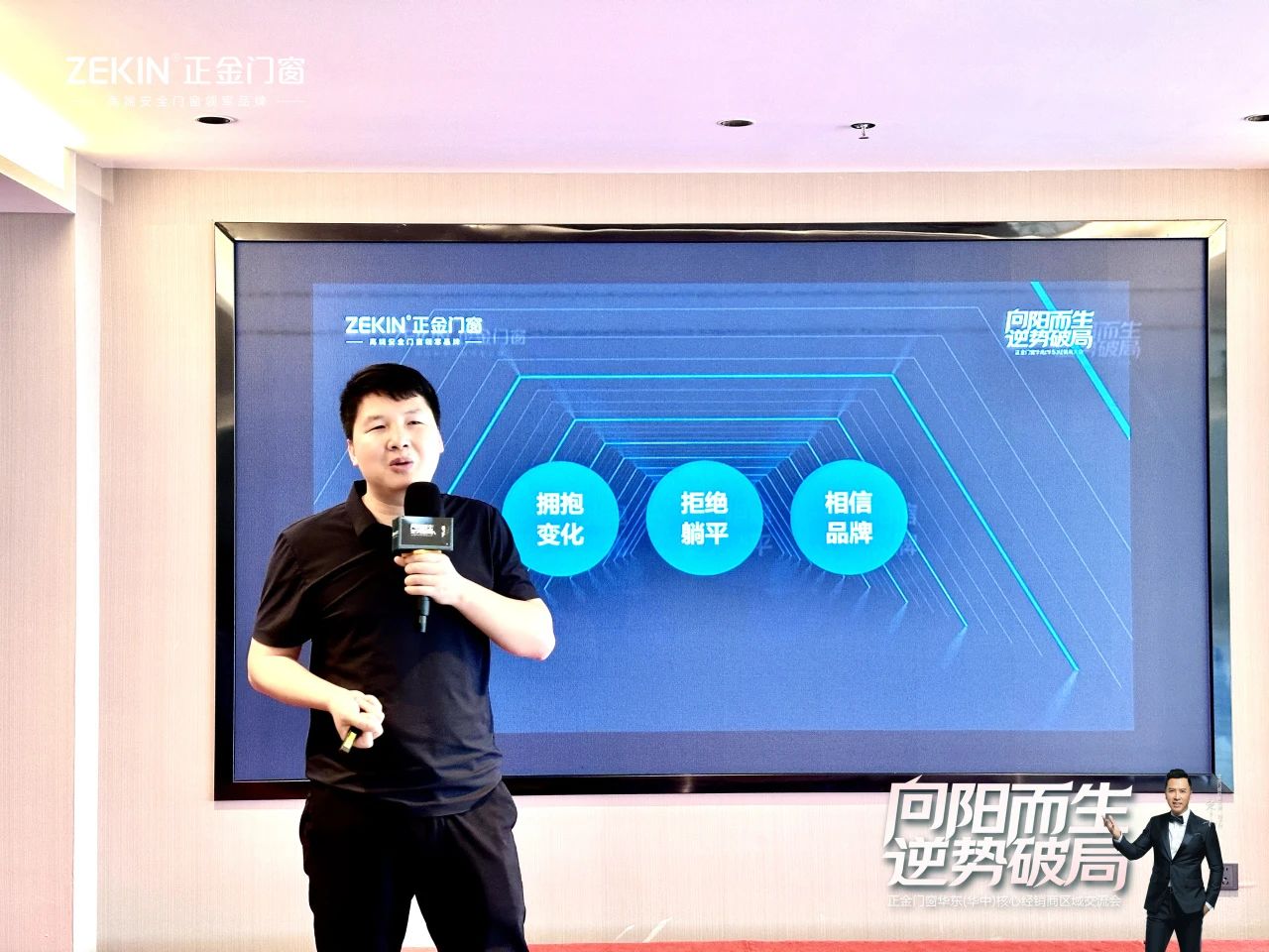 正金门窗总司理刘科特为大师深度解构市场趋向,精准锁定计谋航向。刘总表现,正金门窗2024年将全局提速冲刺,以高能高效的营销体系赋能周全增加,助力经销商家人高速生长,创赢将来。同时将不时加速产物研发立异和优化办事,周全晋升终端市场的焦点合作力,和全部经销商家人们配合“破卷”出圈,助力门店事迹起飞。