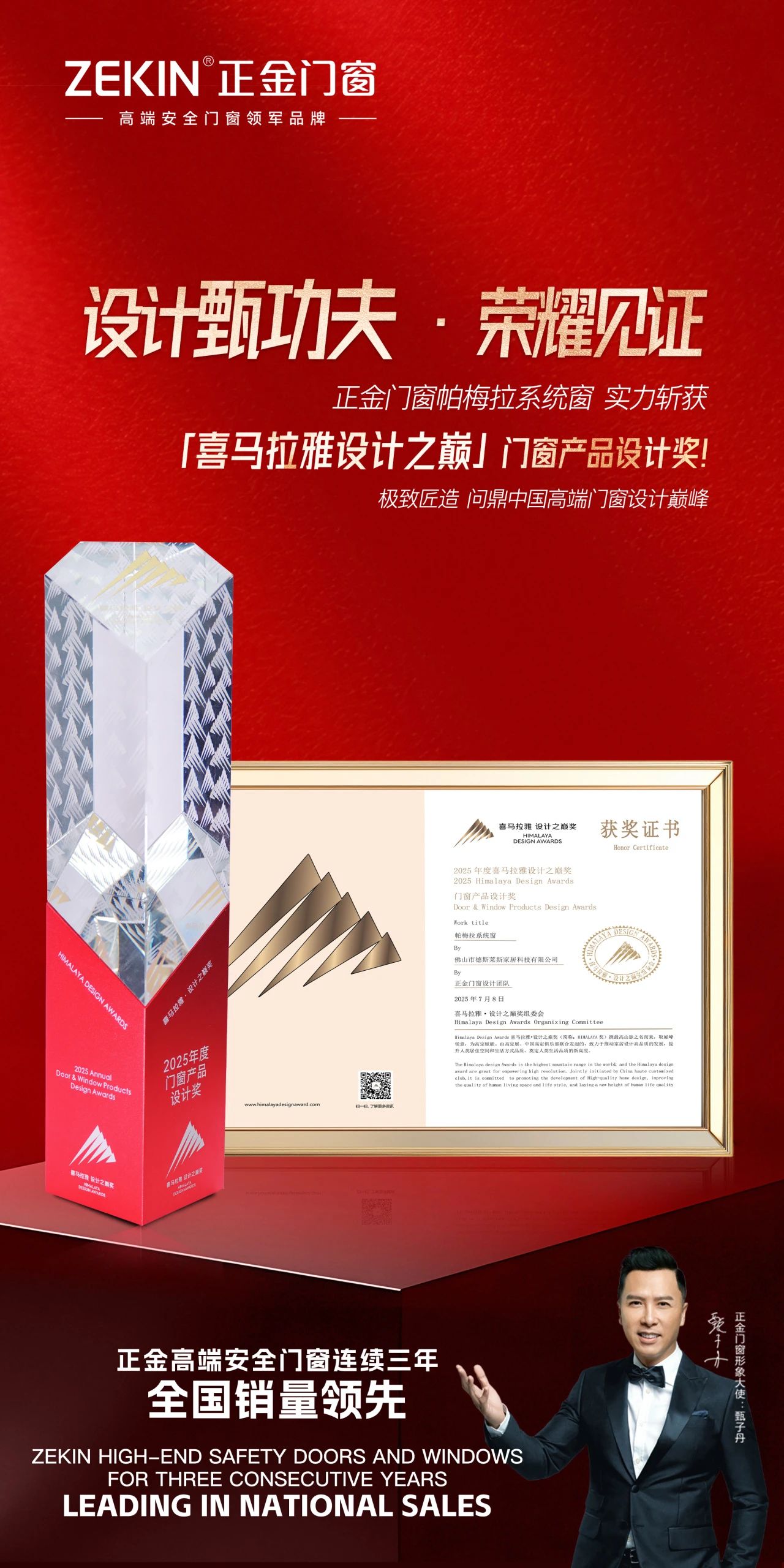 门窗一线品牌正金门窗 帕梅拉体系窗气力斩获「喜马拉雅设想之巅」门窗产物设想奖