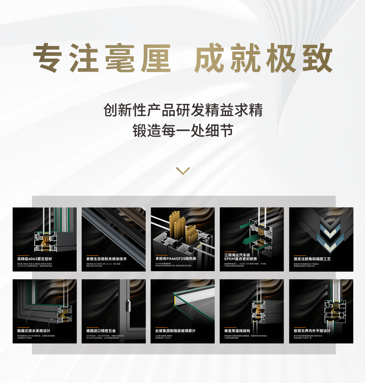 患得患失了平谈生成物的单一化合伙?巴望拥有让敌手瞠乎随后的层面上风?正金断桥门凭仗对“精心”的纯粹,都希望能寻求,努力创造了在隔音效果、隔热功能、抗风性压、水密、密封性等层面机器上“遥遥抢鲜”的生成物矩阵计算!正金断桥门以186项精致沉静专利局对你落成牢固的市場信基础,作为消耗 者信的最佳选择。